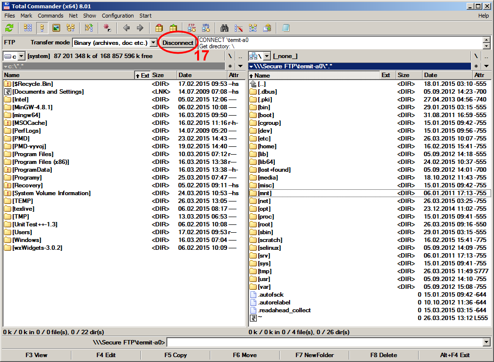c:\Program Files\totalcmd nebo c:\totalcmd. Po rozbalení se vytvoří adresář sftp s těmito soubory:sftp |-- x64 | |-- libeay32.dll | |-- libssh2.dll | `-- zlib1.dll | |-- libeay32.dll |-- libssh2.dll |-- sftpplug.wfx |-- sftpplug.wfx64 `-- zlib1.dll