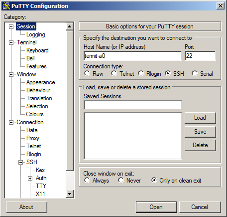 putty. Do pole Host name (or IP address) napíšete termit-a0.~~SP~~