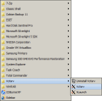 Pokud chcete na serveru využívat grafické aplikace, je třeba před připojením spustit VcXsrv X Server. V menu programy najedeme na VcXsr a spustíme program VcXsr.
