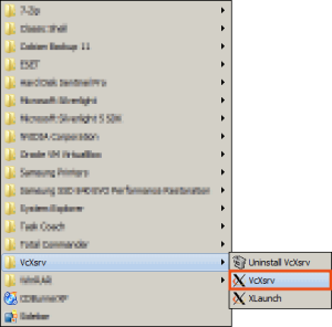 Pokud chcete na serveru využívat programy s grafickým rozhraním (např. MATLAB nebo ANSYS), je třeba před připojením spustit VcXsrv X Server. V menu programy najedeme na VcXsr a spustíme program VcXsr.